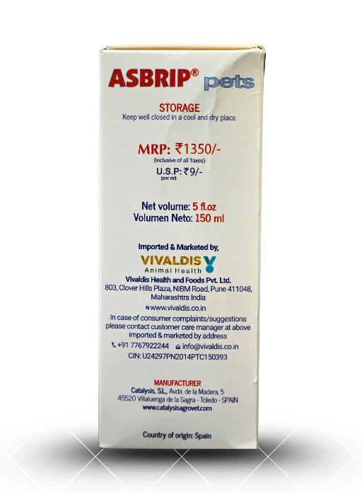 Asbrip is a specialized veterinary respiratory supplement produced by Vivaldis Animal Health to manage coughing and breathing issues in pets. It is particularly known for its use in treating Kennel C