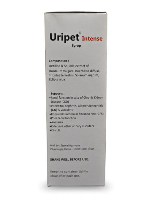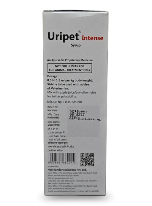 Neo Kumfurt Uripet Intense Syrup is a potent liquid supplement for dogs and cats designed to provide comprehensive support for urinary tract complications and kidney health. It functions as a urinary