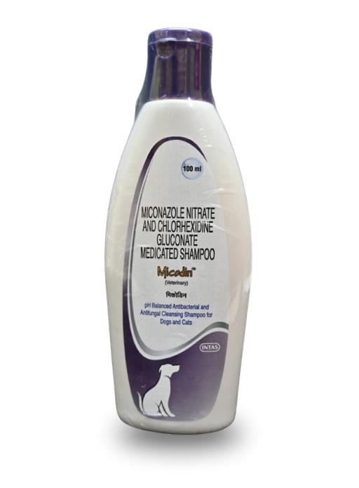 Micodin Shampoo by Intas Pharmaceuticals Ltd. is a medicated, pH-balanced cleansing shampoo specifically formulated for dogs and cats to treat various bacterial and fungal skin infections. Key Benefi