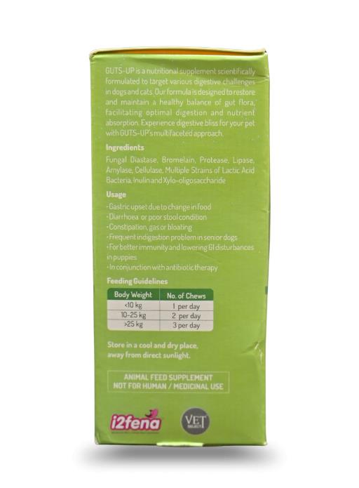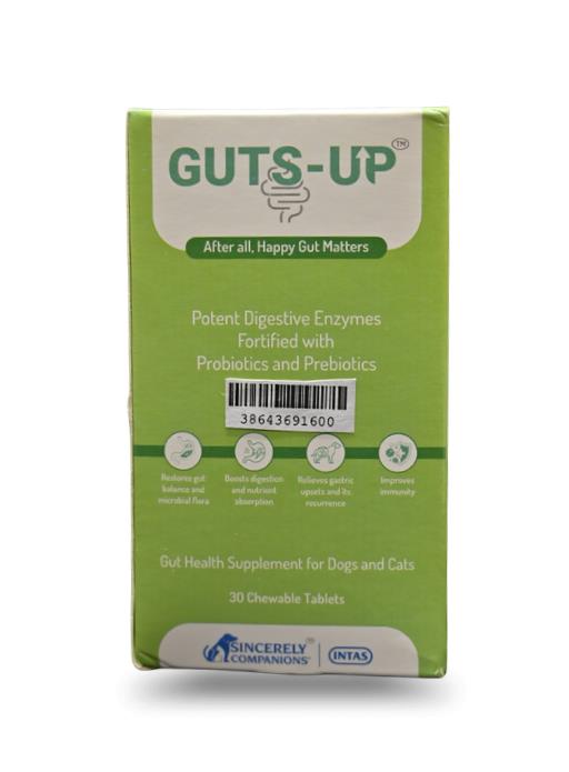 Intas Guts Up is a scientifically formulated digestive health supplement designed for both dogs and cats to manage various gastrointestinal challenges. It is primarily used to restore and maintain a