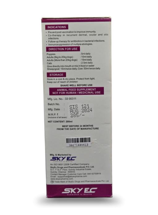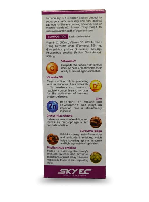 Sky-Ec ImmunoSky is a veterinary-formulated immune-boosting supplement for dogs and cats. It is primarily used to strengthen a pet"s natural defenses against pathogens like bacteria and viruses, espe
