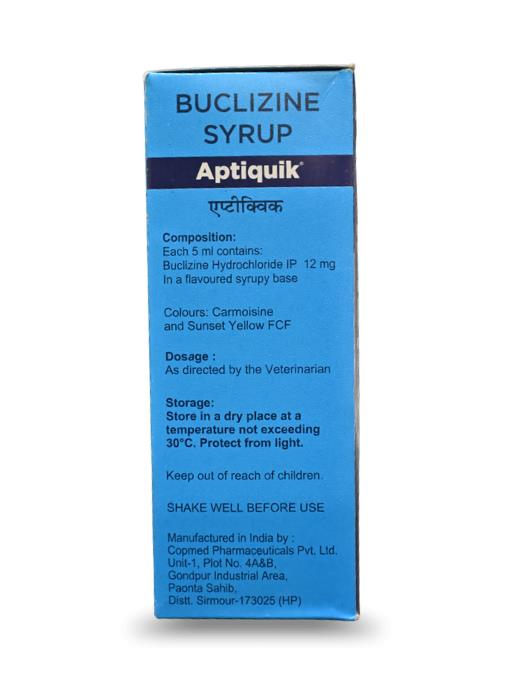 Aptiquik Syrup is a veterinary appetite stimulant primarily prescribed for dogs to treat loss of appetite (anorexia) and promote weight gain in weak or underweight pets. It is marketed by Mankind Pha