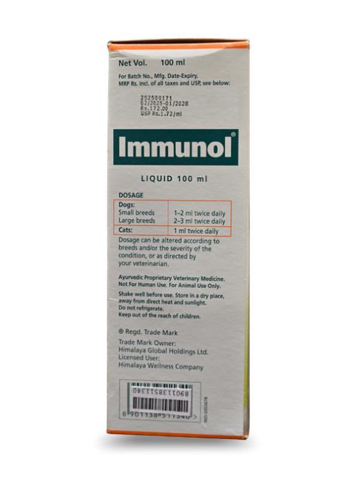 Himalaya Immunol is a natural, Ayurvedic herbal supplement primarily used as an immunomodulator and phagocytosis enhancer for dogs and cats. It is designed to strengthen the immune system"s response